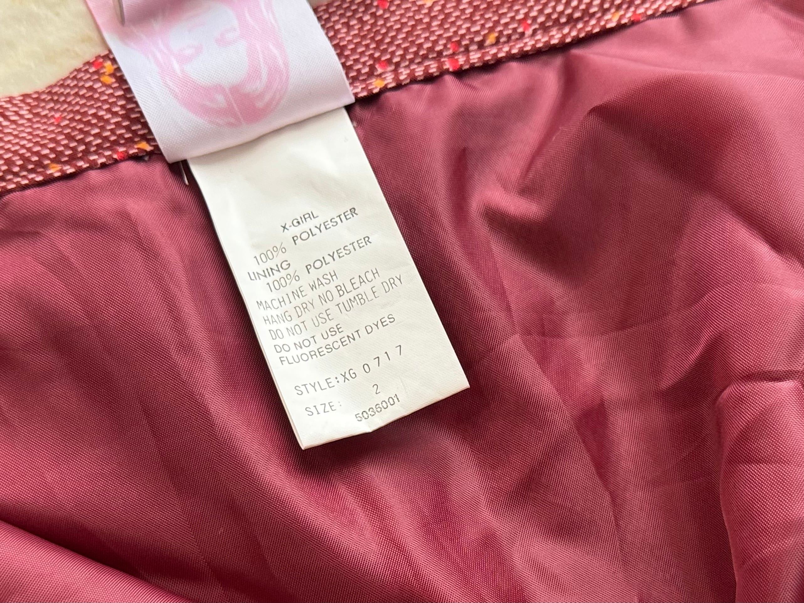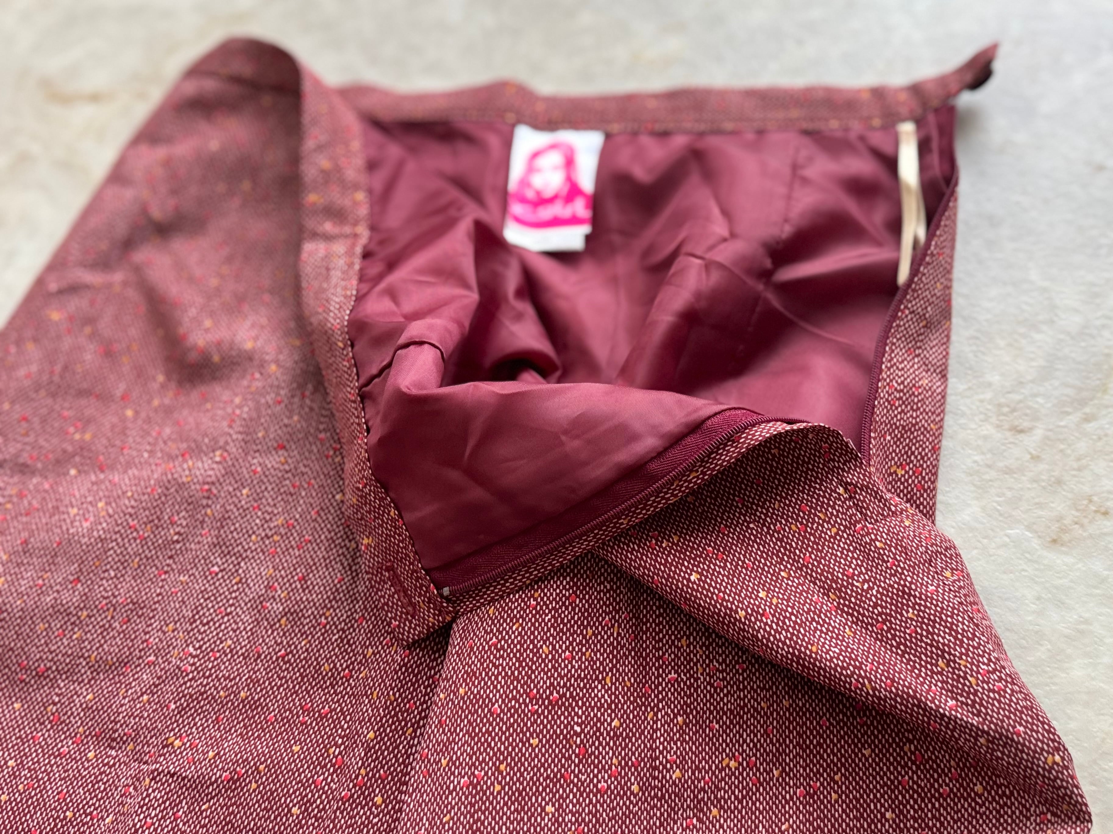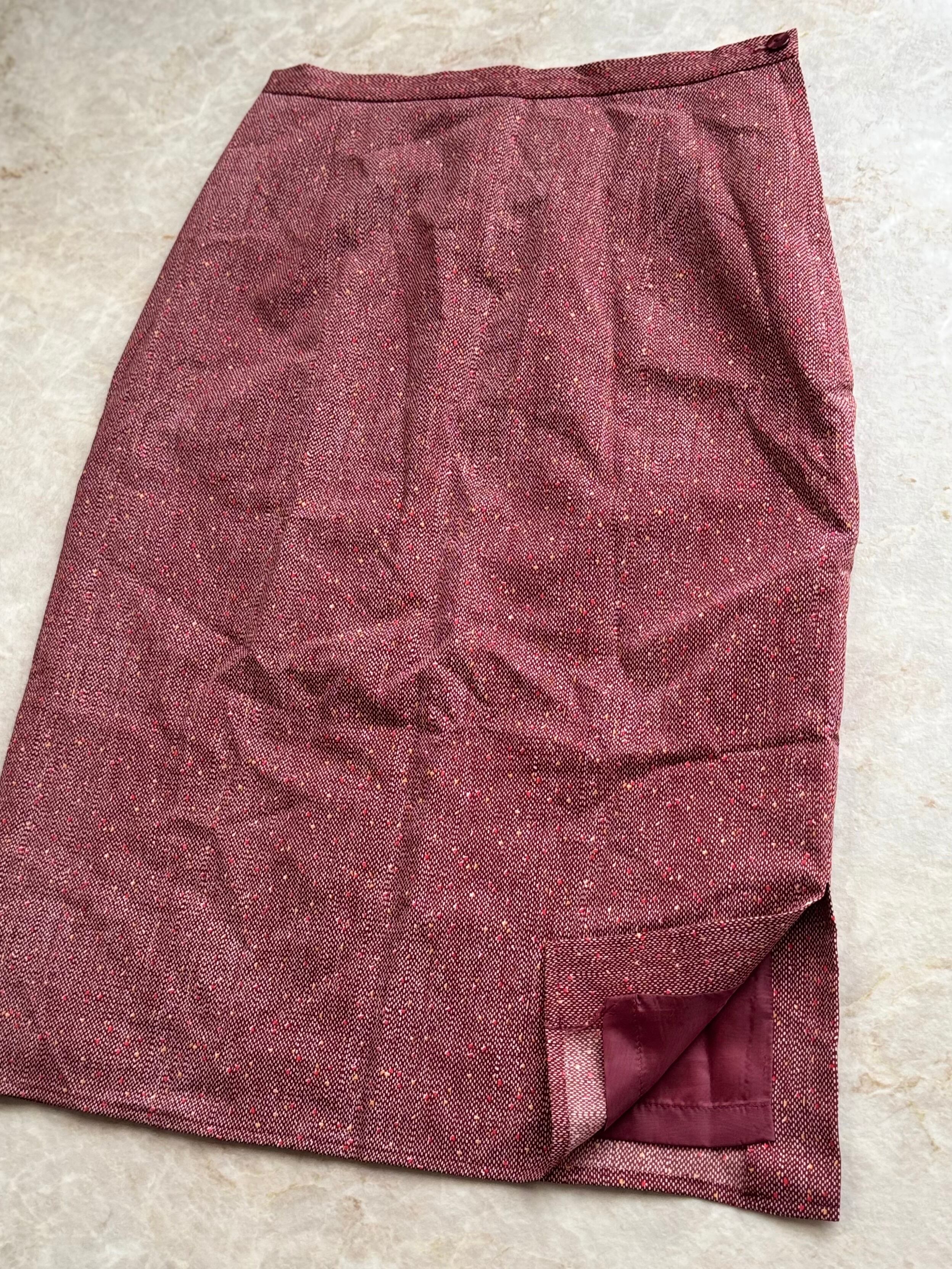 エグゼクティブの赤いツイードタイトスカート、裏地付きでスタイリッシュ。