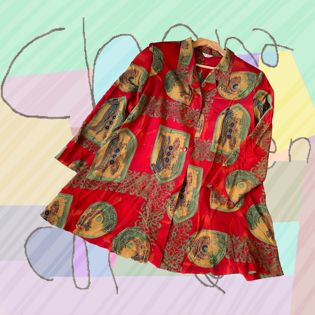 #エスニック #ロングシャツ #赤
