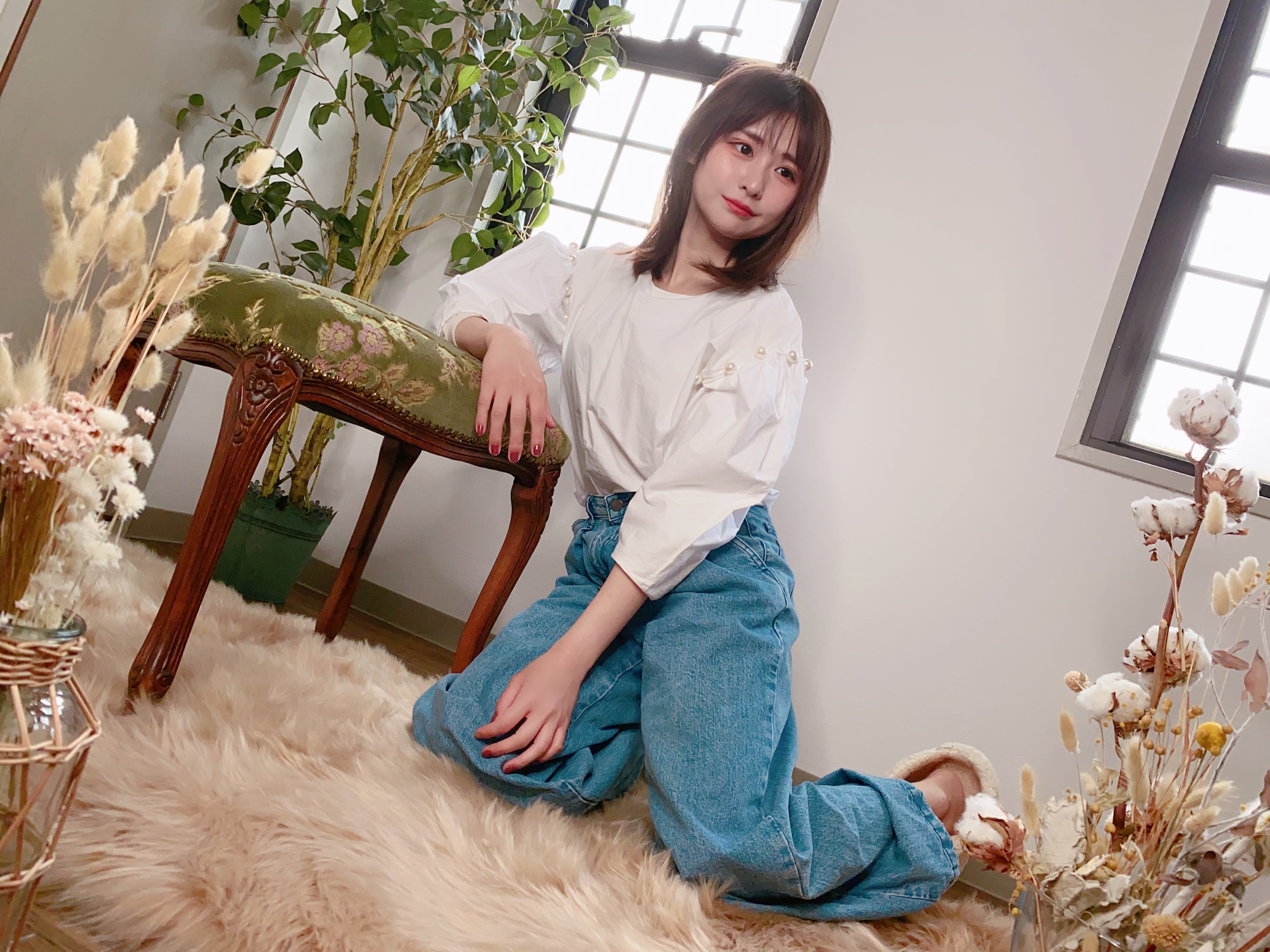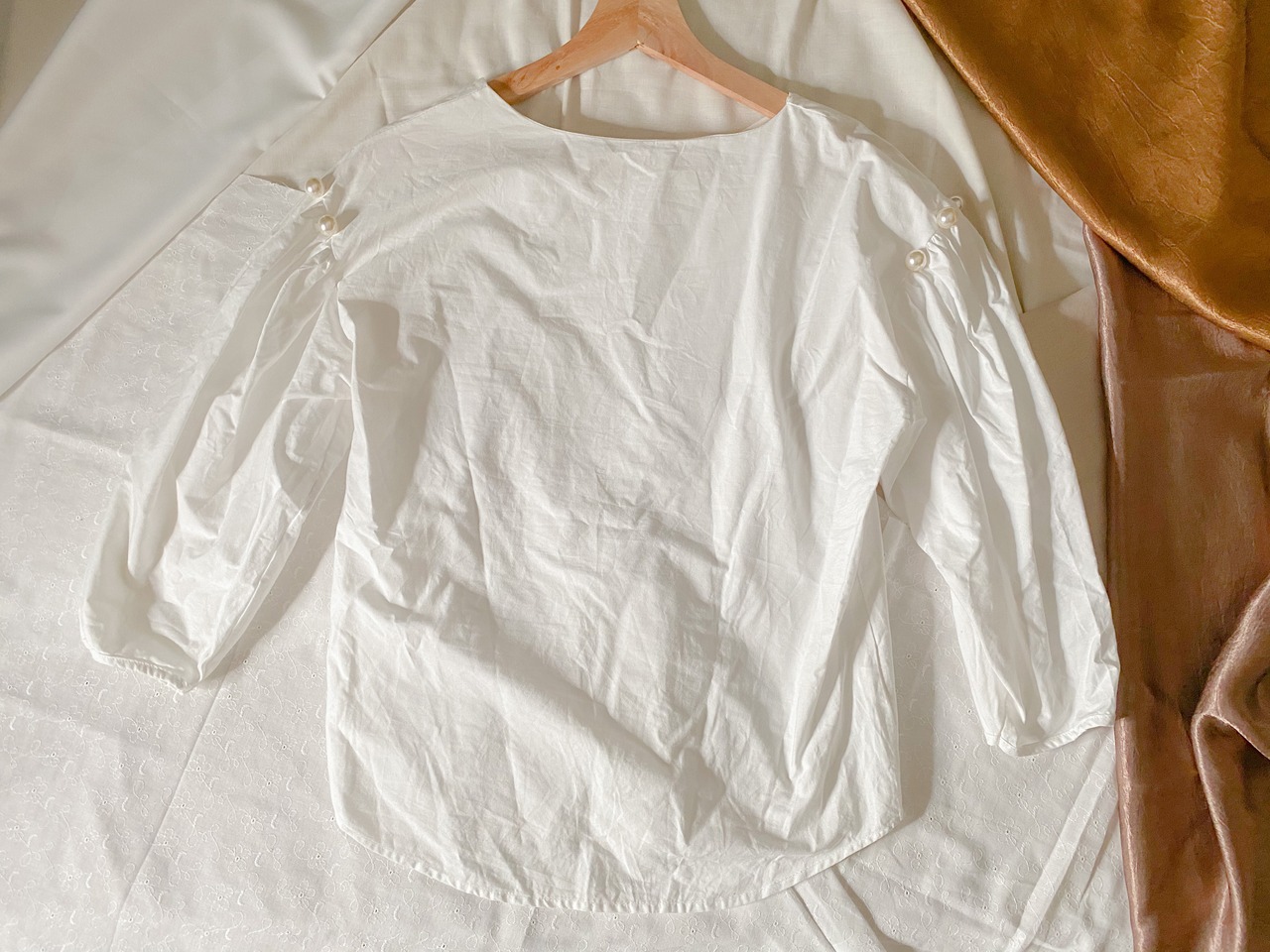 パールでかわいさ強調な七分丈シャツ\(^-^)/