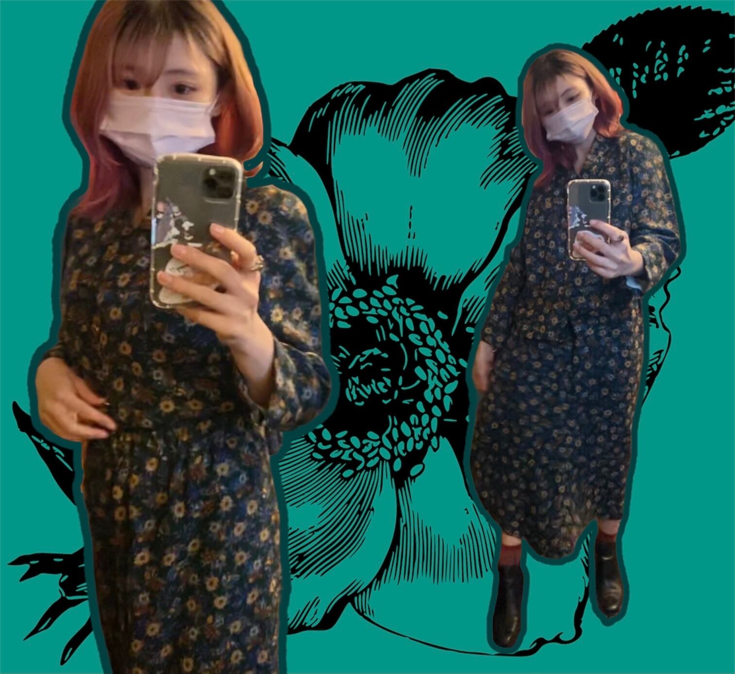 濃ゆいミドリに小花がちらちらと