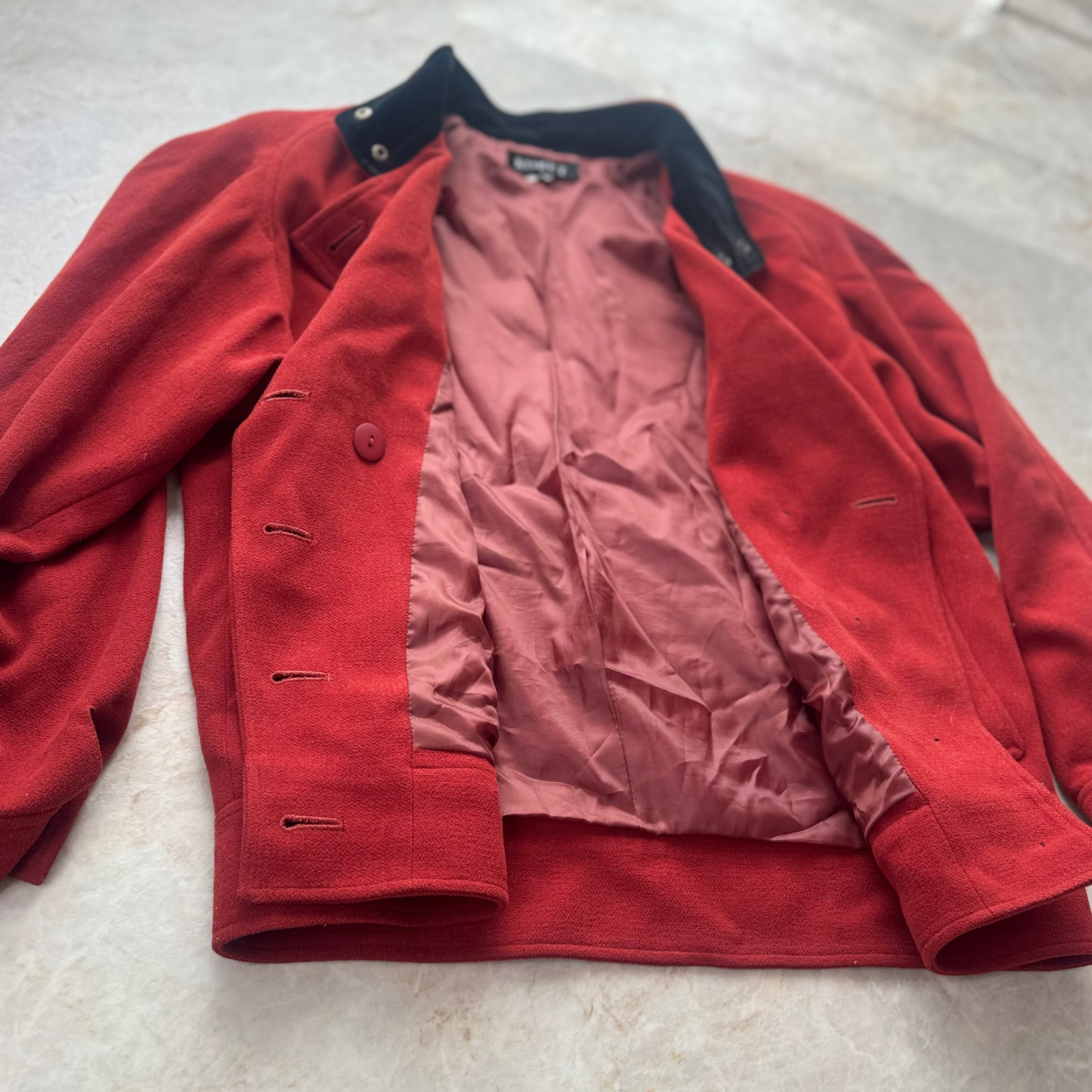 コーデュロイ襟のボタン付き赤ジャケット