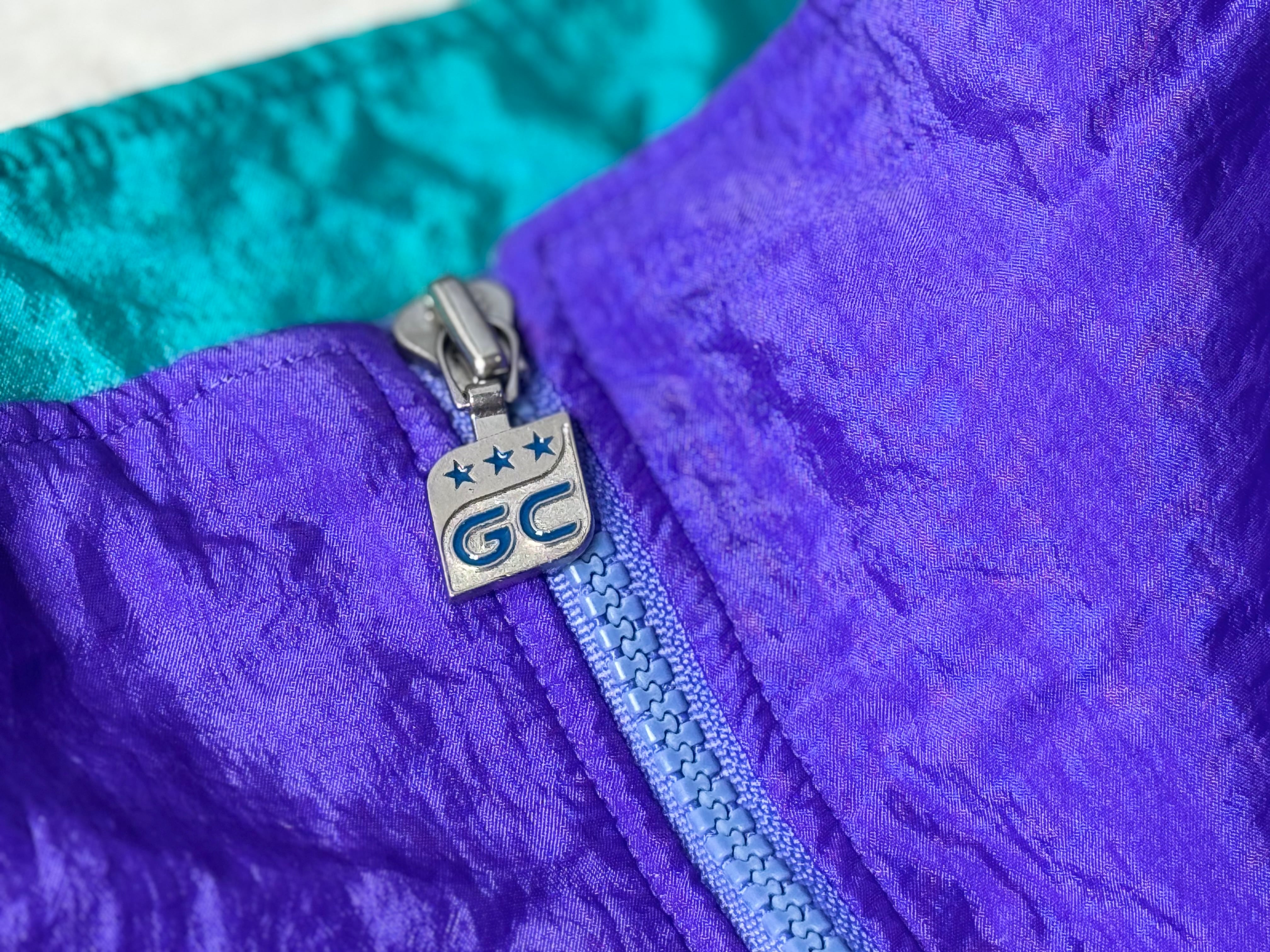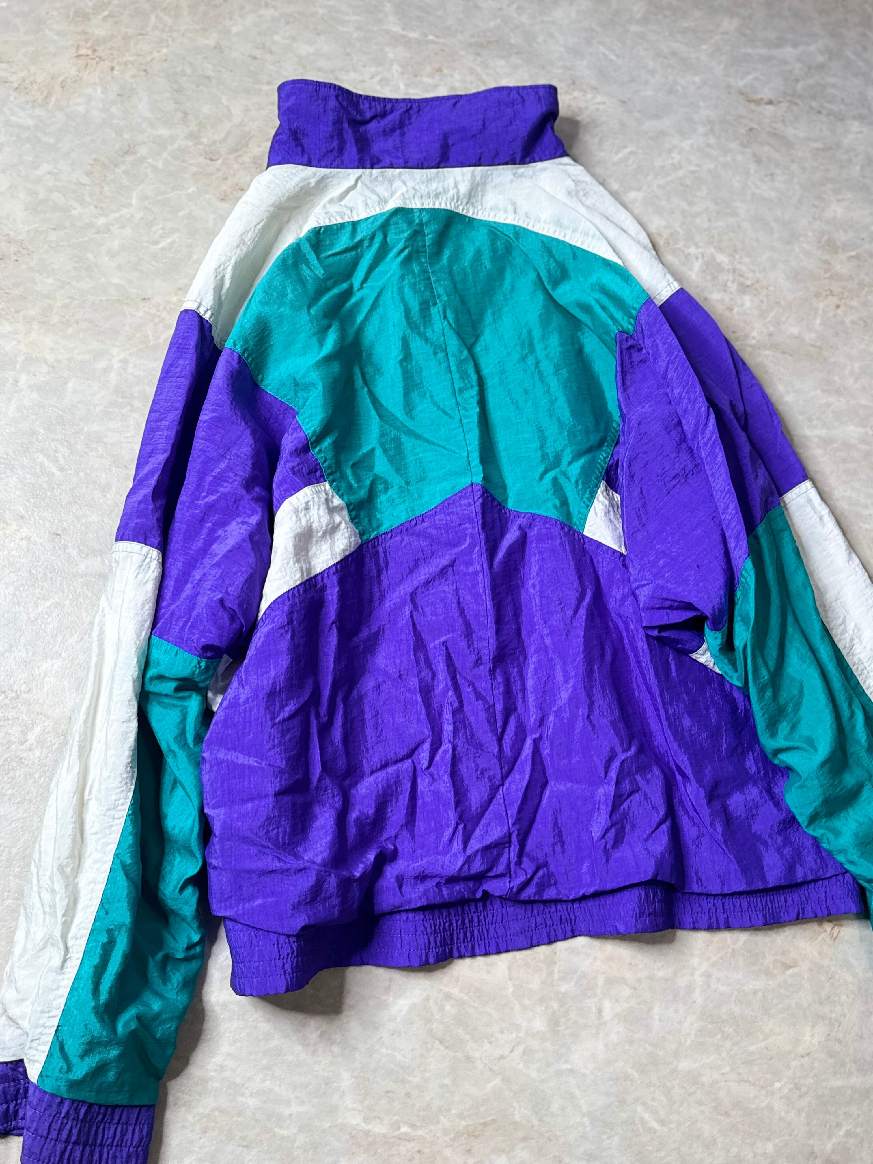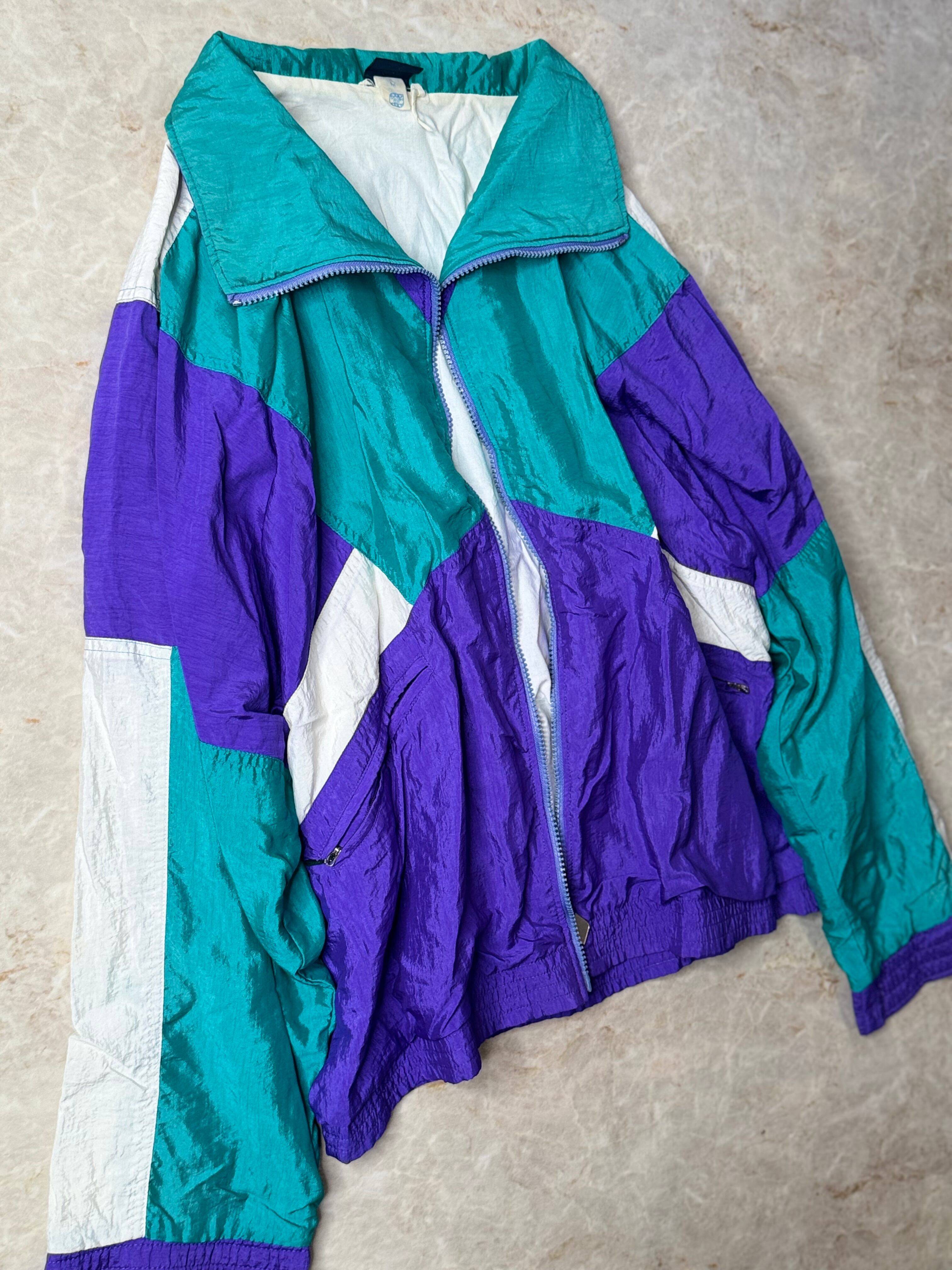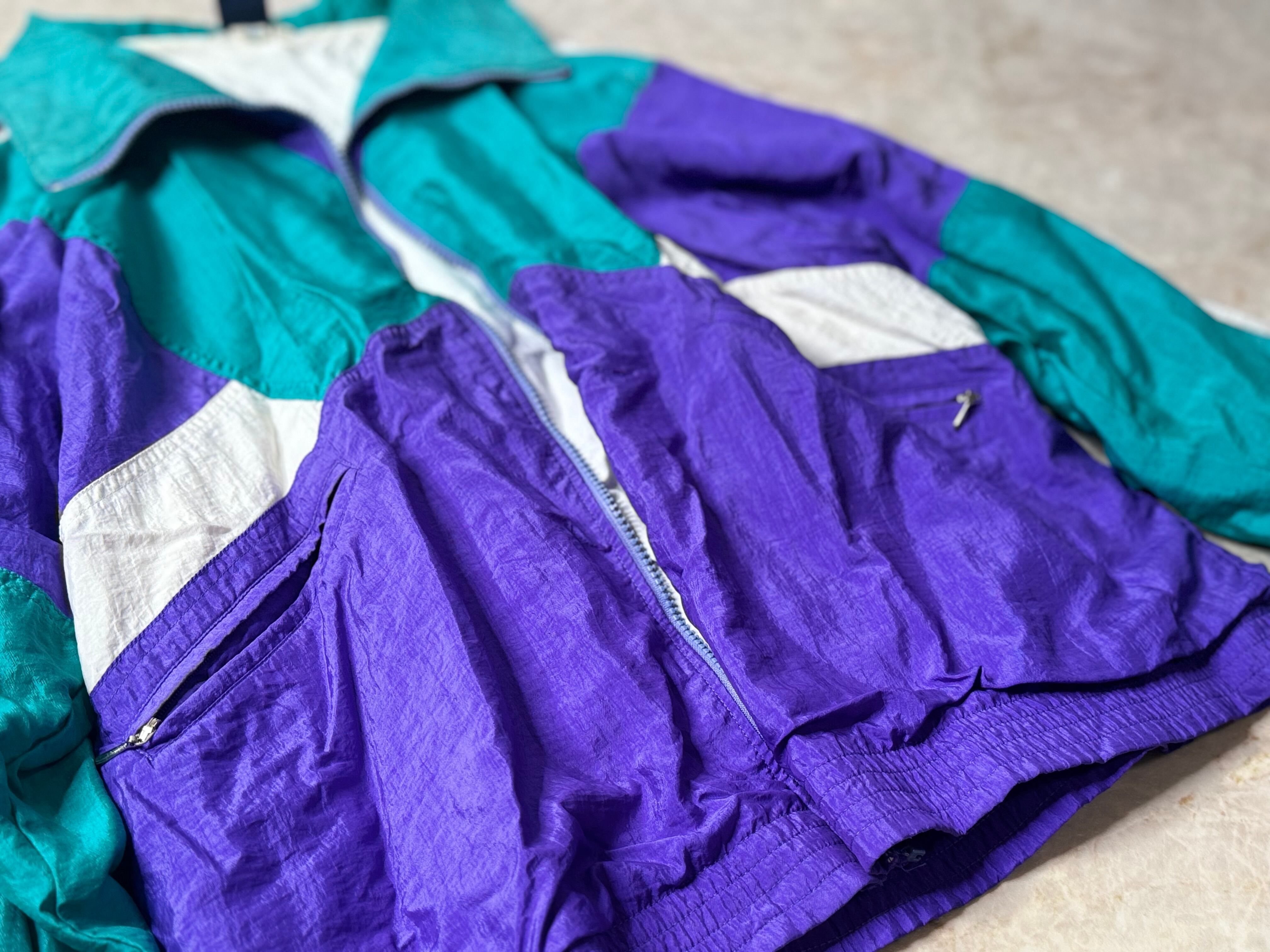 軽量で通気性の良いナイロンジャケット、スポーティなカジュアルスタイル。