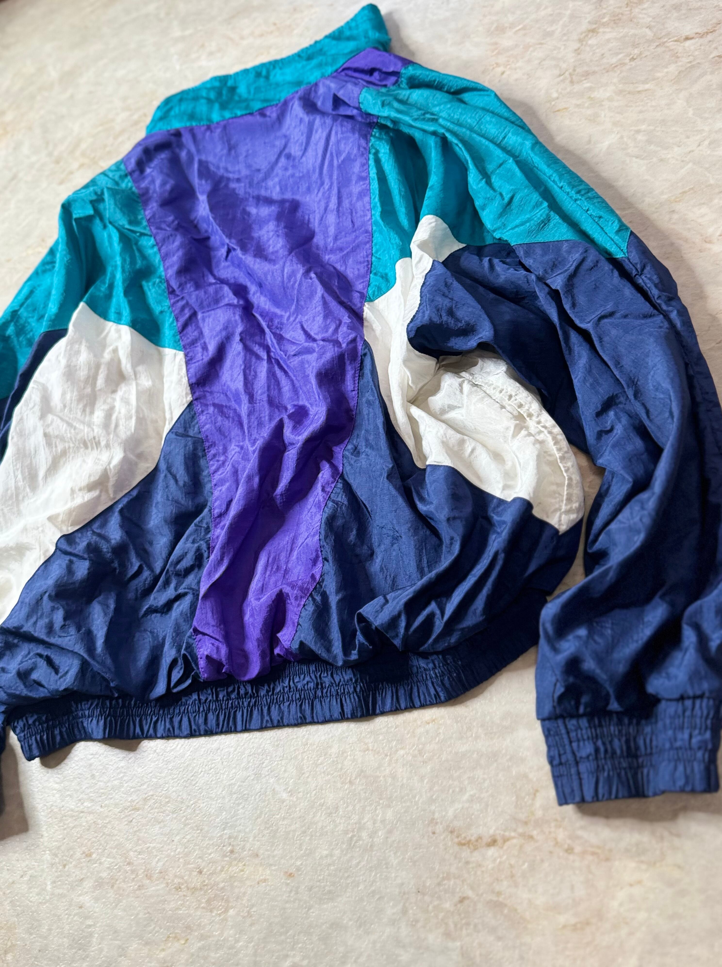 軽量で通気性の良いナイロンジャケット、スポーティなカジュアルスタイル。