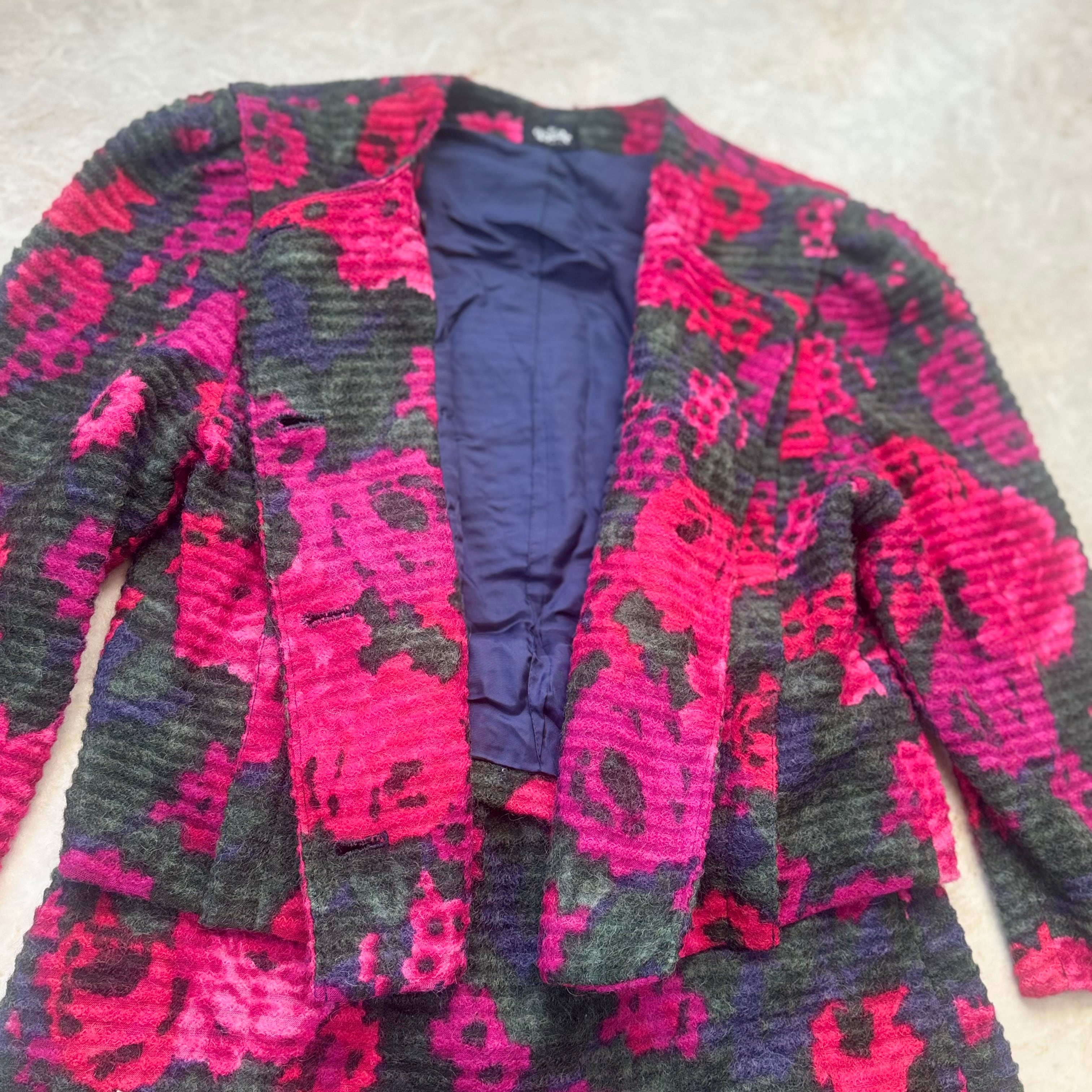 ピンクと黒の花柄のテクスチャー生地を使用したセットアップ