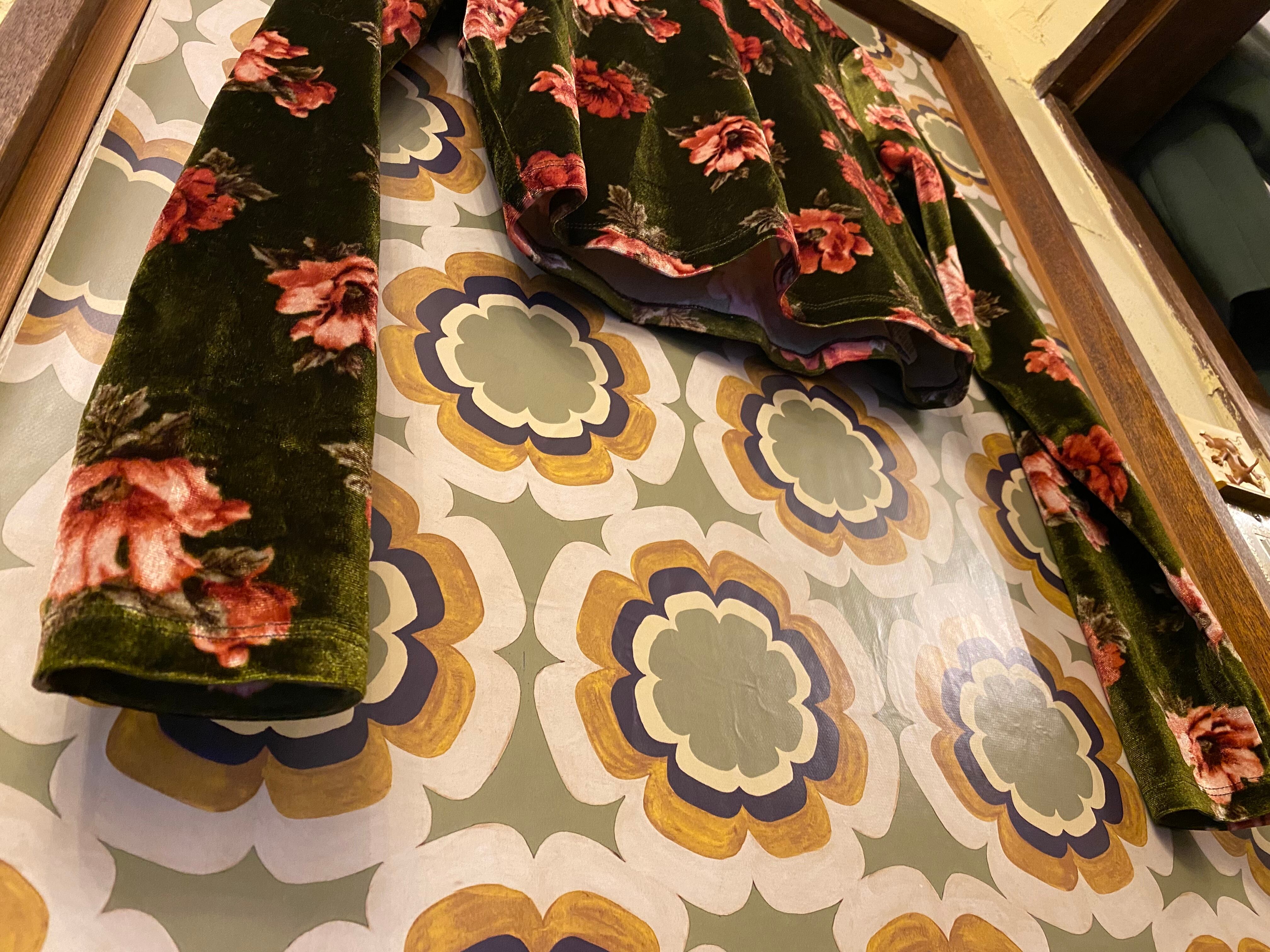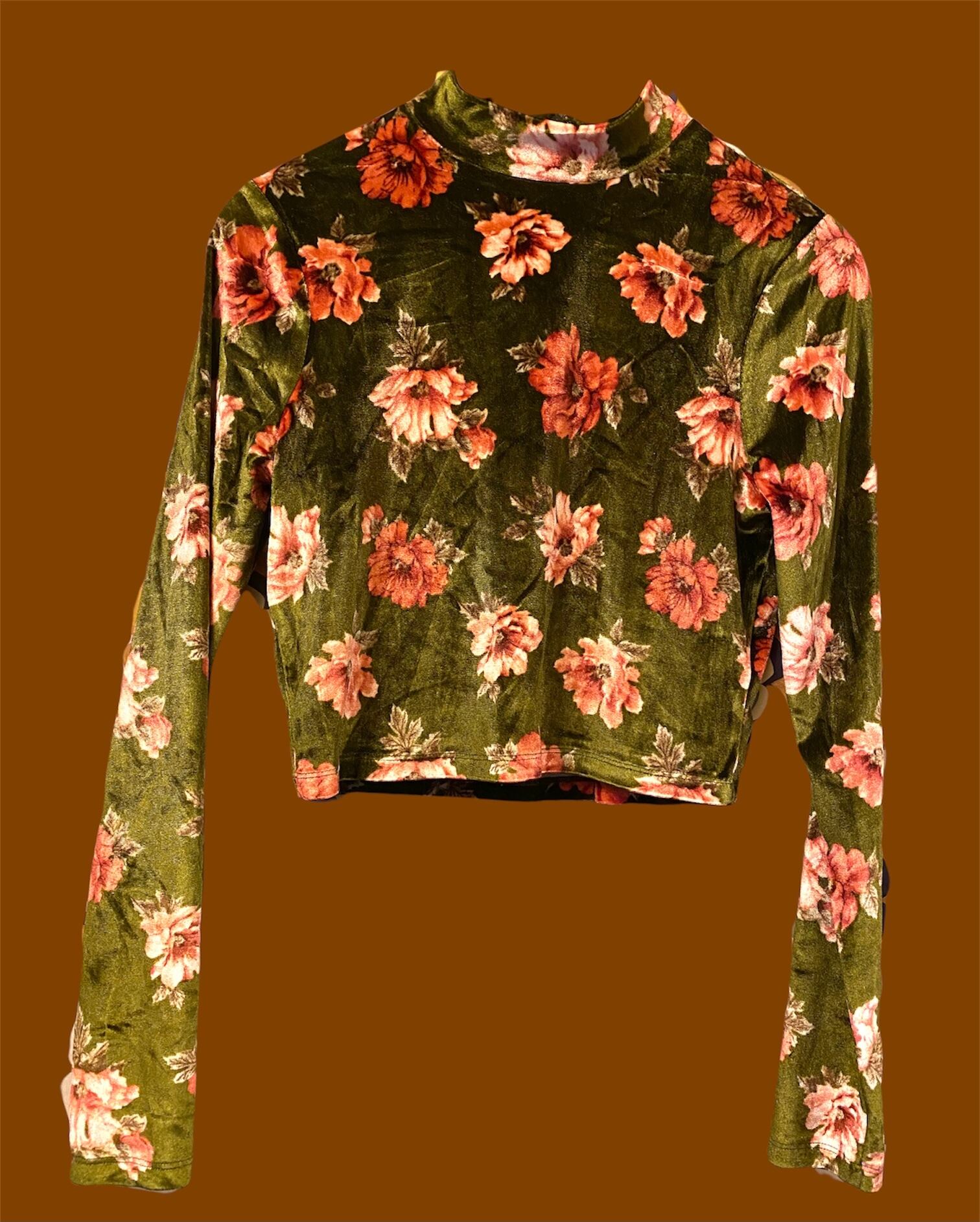 花柄/ショート丈/腕長/ベロア生地/ハイネック