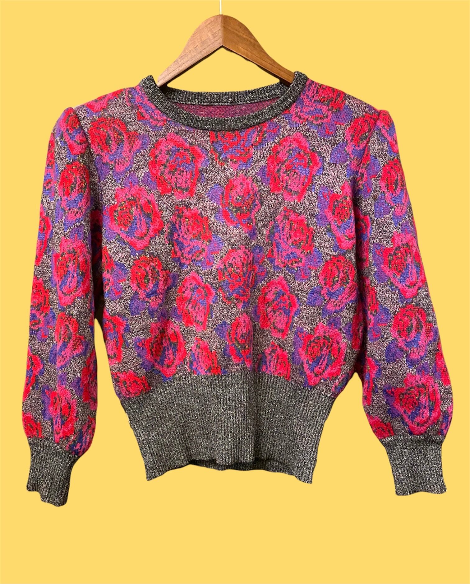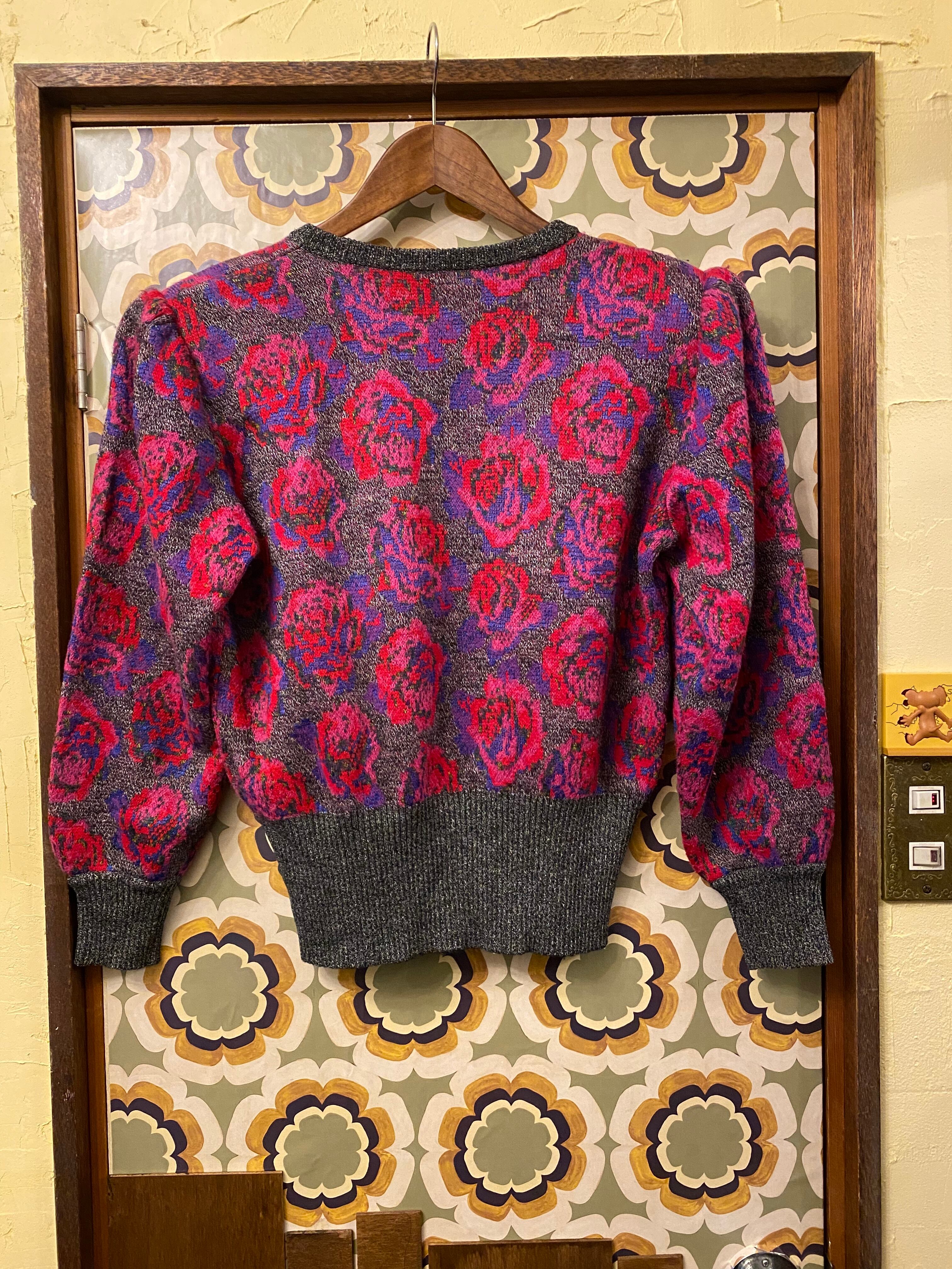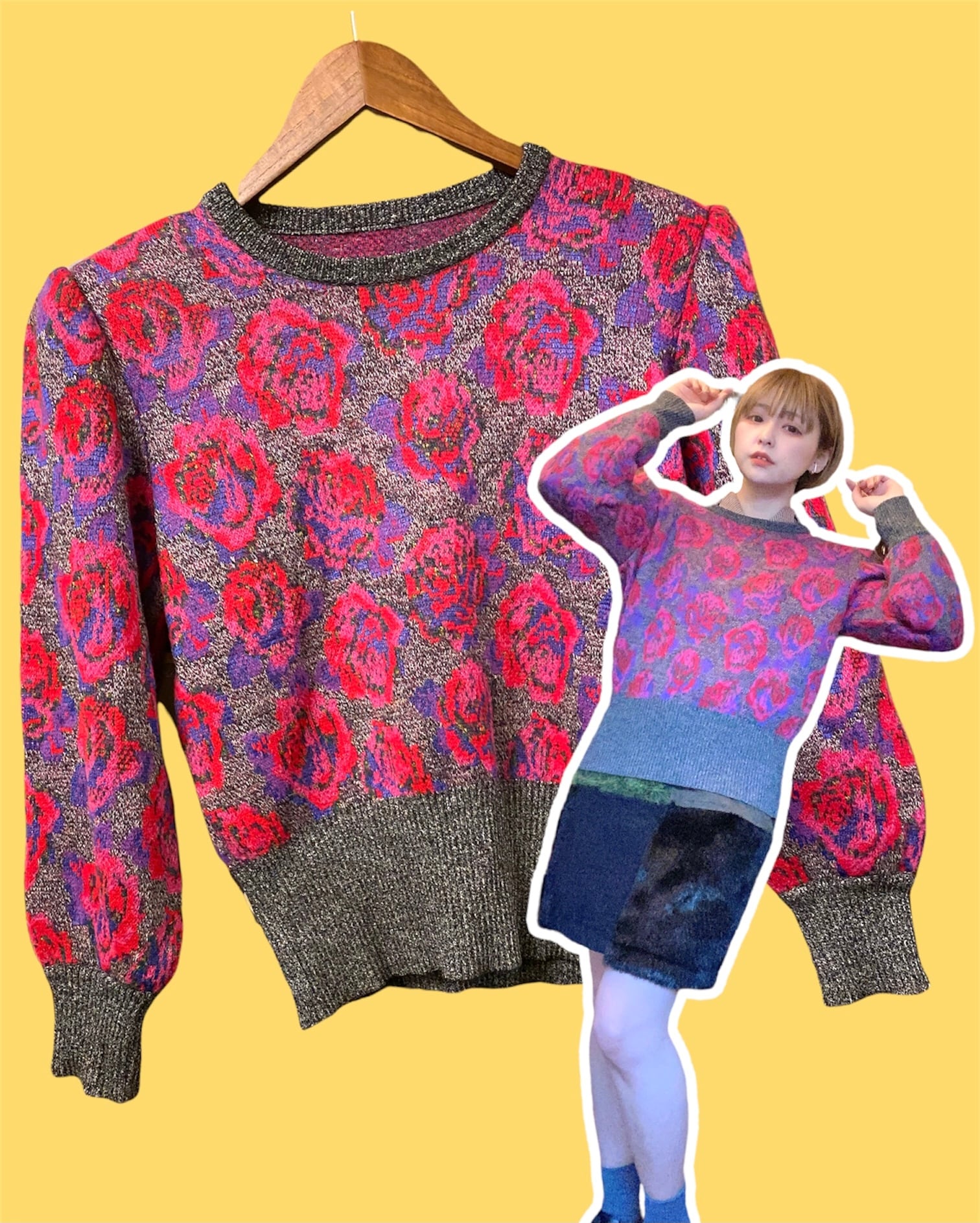 ニットセーター/薔薇/柄セーター/総柄/デザイン