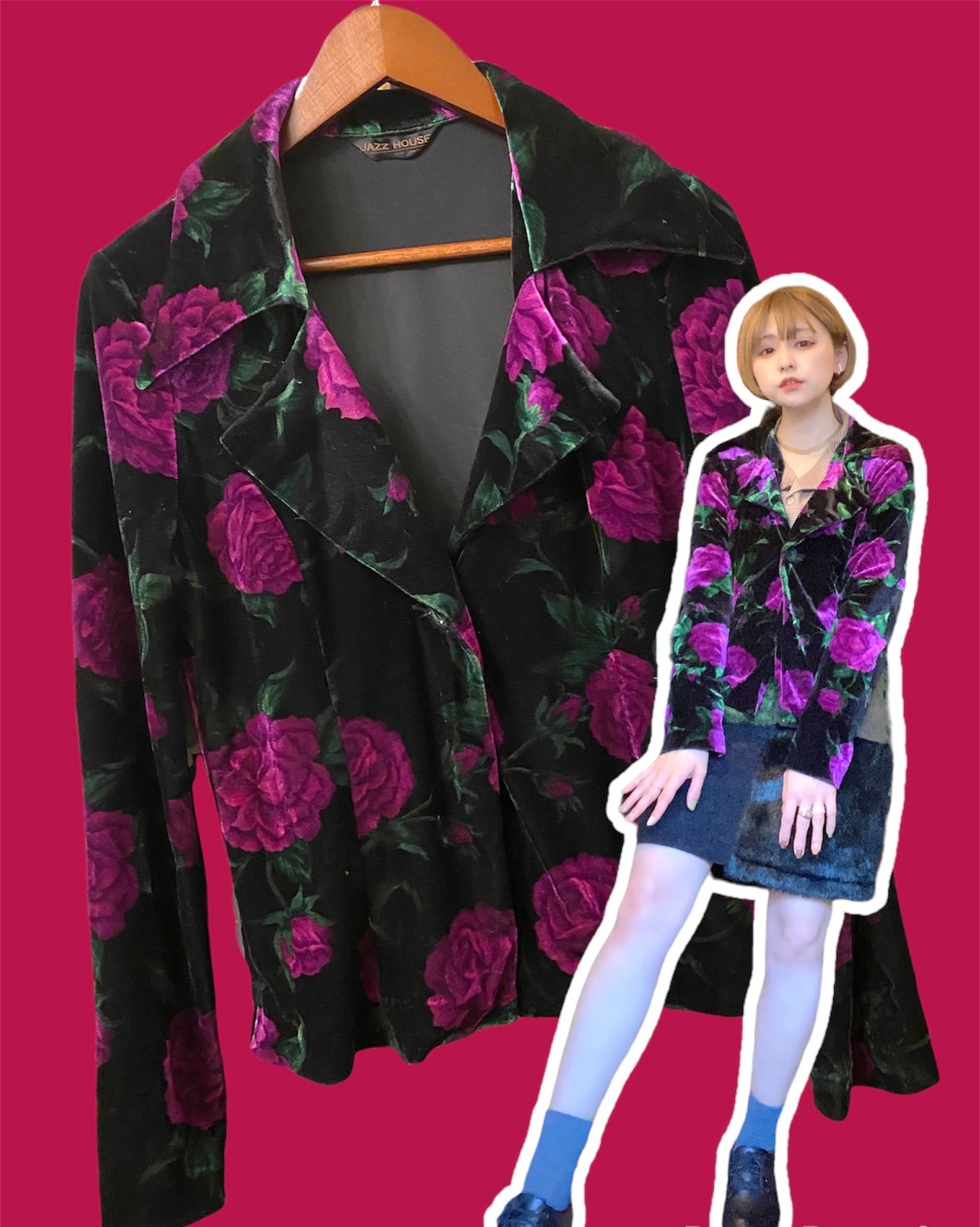 ベロア/柄シャツ/ジャケット/薔薇柄