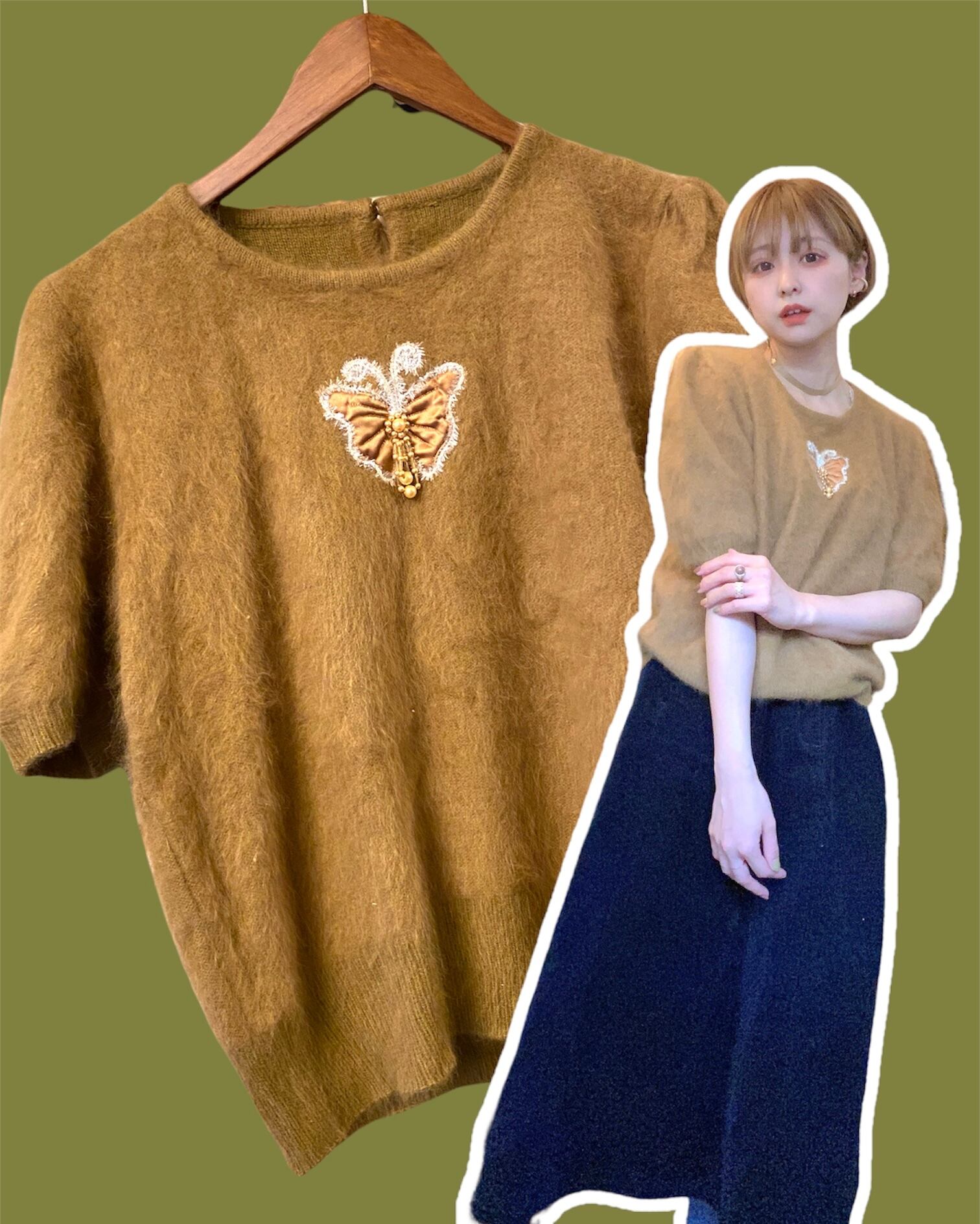毛/ファー/半袖ニット/半袖セーター/蝶々