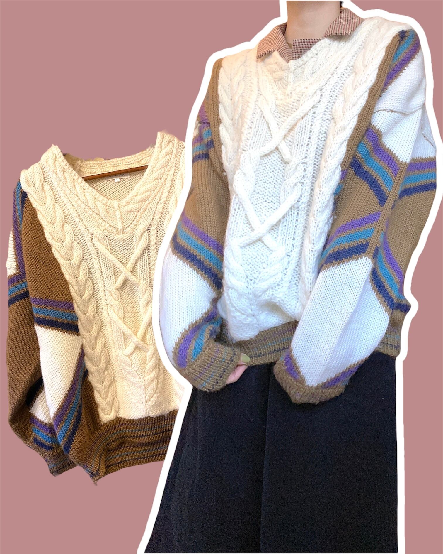 ニットセーター/ビックサイズ/Vネック/編み目/柄セーター/メンズ/オルチャンファッション