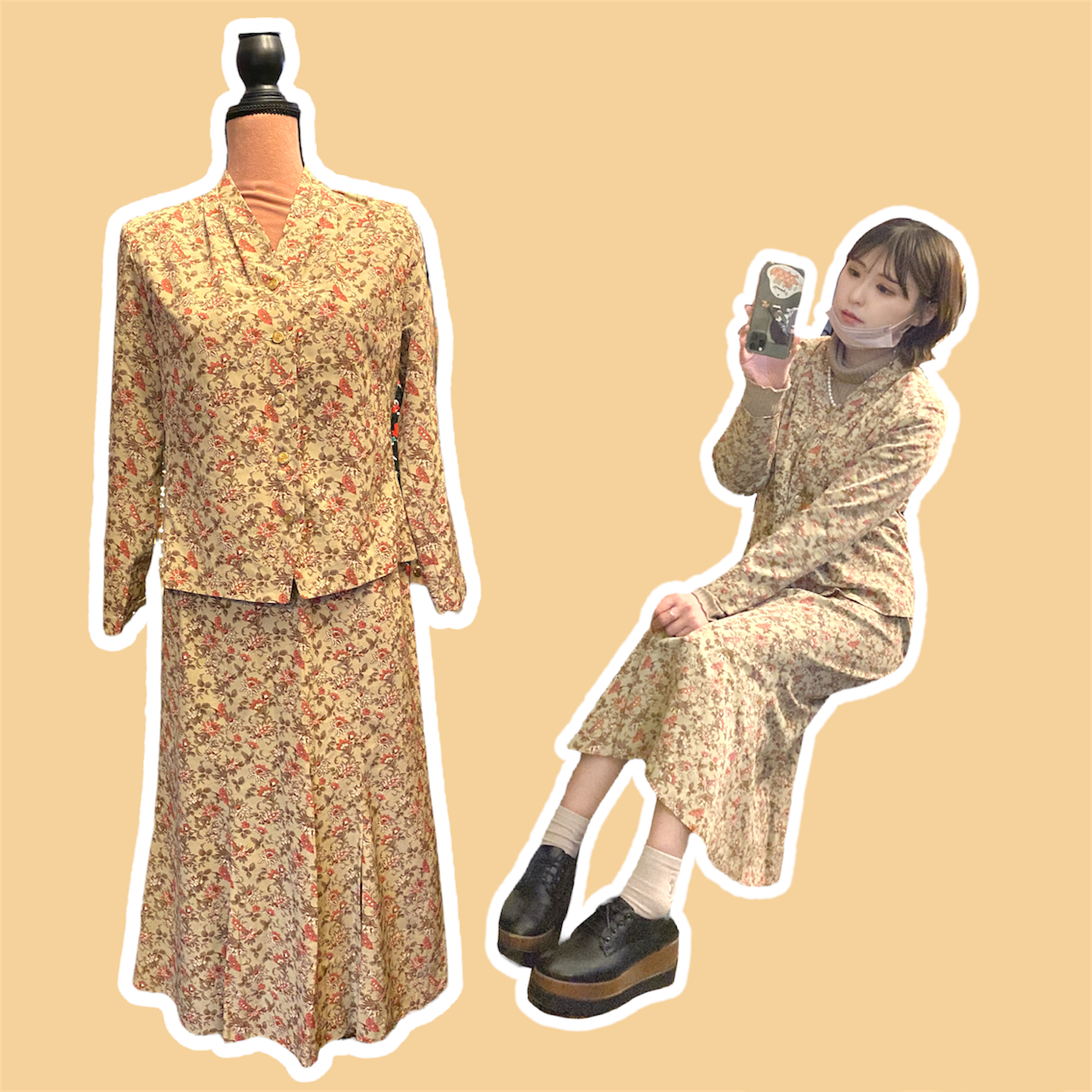 セットアップ/昭和レトロ/花柄/柄スーツ/花柄スカート